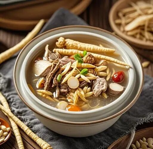 材料:微山湖麻鸭1只,莱阳沙参50克,玉竹参30克,葱、姜、盐适量。 制作:将老鸭宰杀后,除去毛和内脏,洗净,放沙锅内,将沙参、玉竹、葱,姜放入,加水适量。将锅置灶上,先用武火烧沸再用文火焖煮1小时以上,使鸭肉烂熟,放入盐调味。 功效:滋阴降火,补肺益肤。 |
